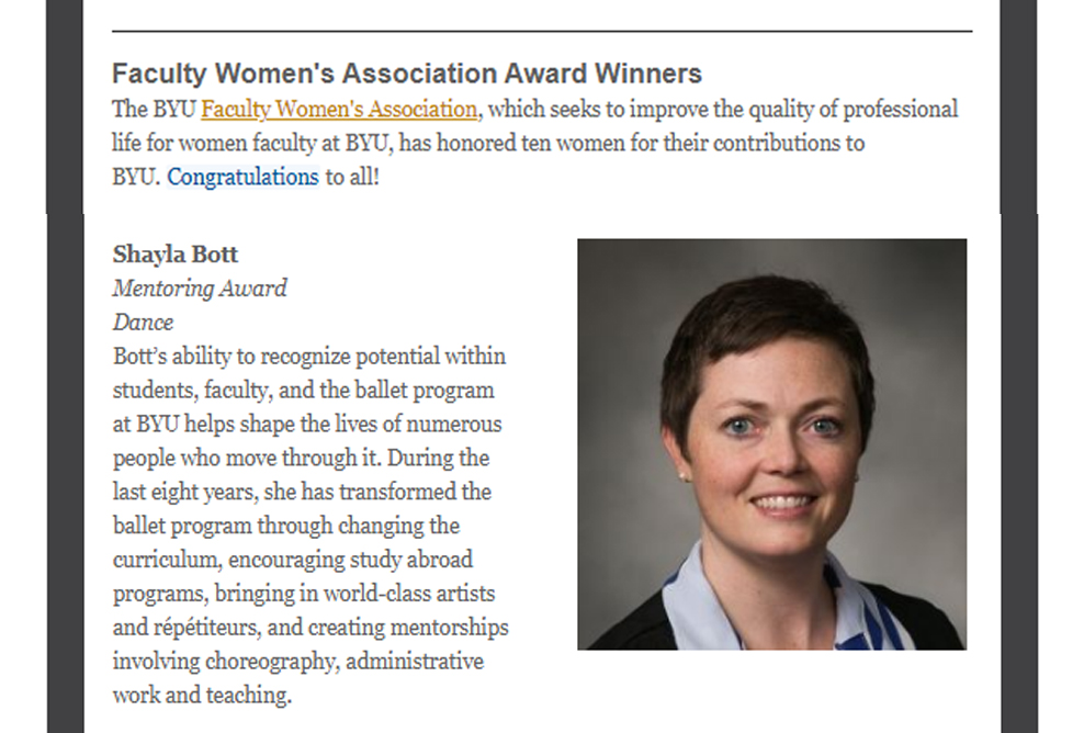 Announced at the BYU University Conference, August 25, 2020, in Provo, Utah. Also published in Y News on Sept. 1, 2020. The Faculty Women’s Association can be found at https://fwa.byu.edu/.
