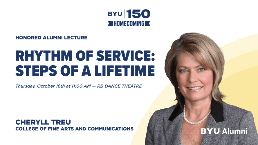 - Honored Alumni Lecture: Cheryll Treu | “Rhythm of Service: Steps of a Lifetime” | Oct. 16 at 11:00 a.m. in the RB Dance Theatre